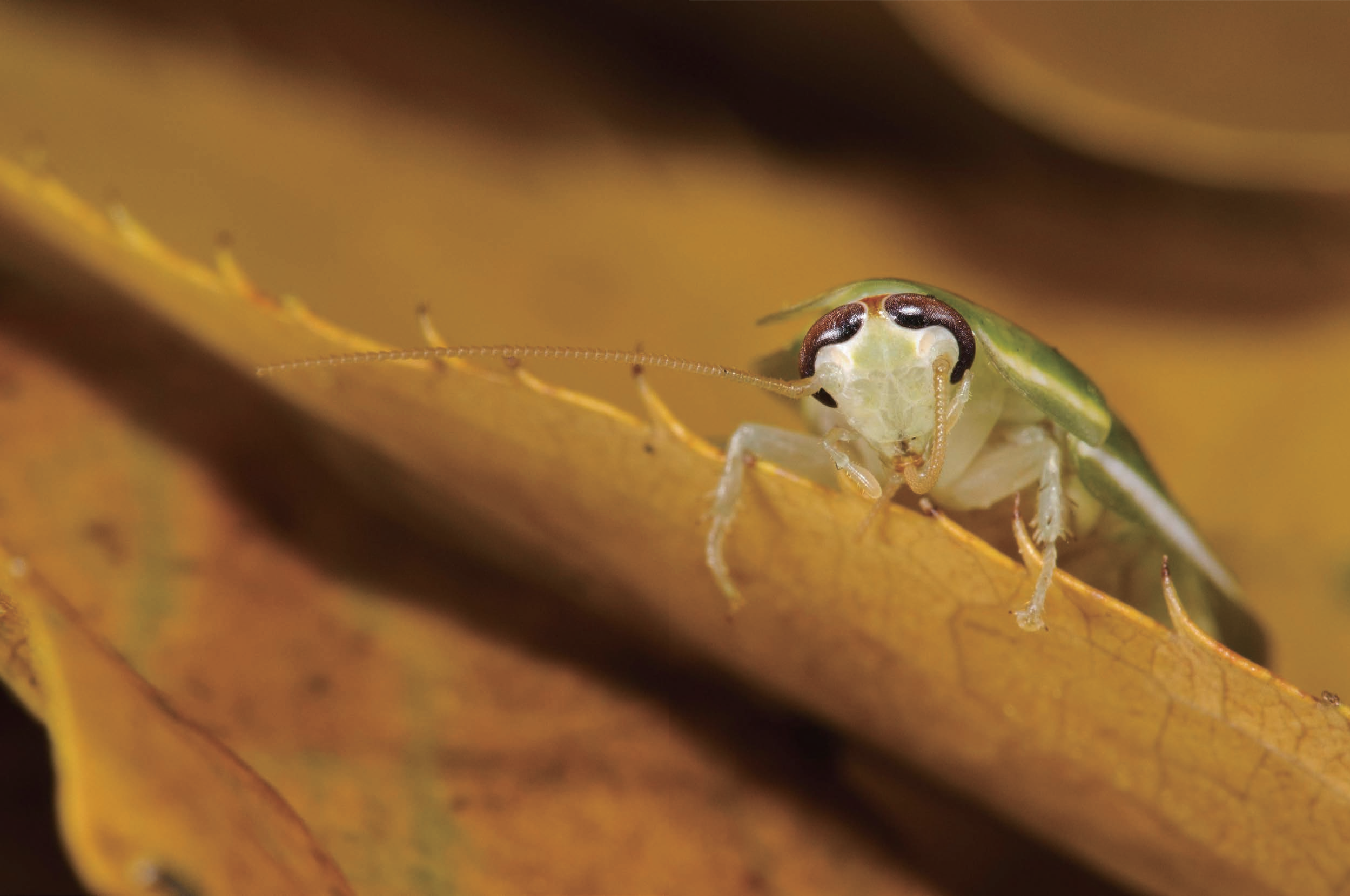古巴绿蠊是一种小型蟑螂,有翅,飞行能力强,体色为浅绿色至黄绿色。成虫常见于灌木丛、树木和植物中,幼虫则可能藏身于原木或其他杂物下。这种外形漂亮的绿色蟑螂经常被当作宠物饲养。